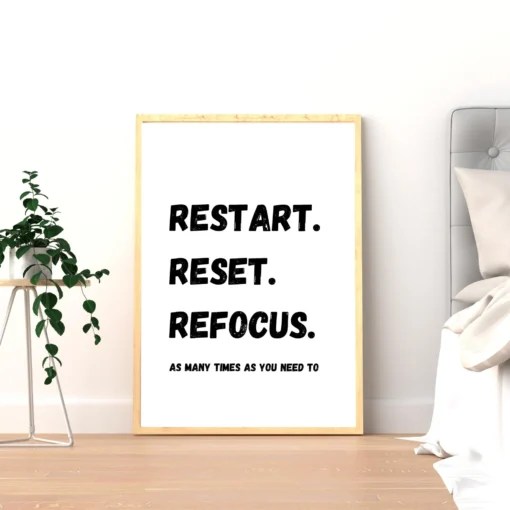 Framed Quote Print – “Breathe, Rest, Reset” (Black Frame, A4 Size)